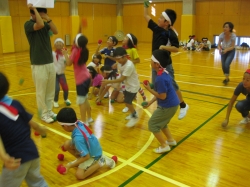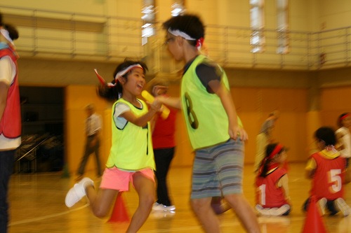 各教会の教会学校の紹介のあと、準備運動に始まり、猛獣狩りゲームでみんなが打ち解け、その後、紅白対抗で、綱とり、大玉送り、玉入れなどなど、最後は運動会の華! リレーで大いに盛り上がりました!